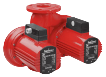 - Smart glandless twin-head circulator with EC motor and integrated electronic power adjustment