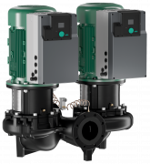 Electronically controlled glanded twin-head pump in in-line design with flange connection and automatic power adjustment.
