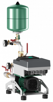 - Diaphragm pressure vessel: 8 l/PN 10 on the end pressure side with butyl rubber diaphragm, completely safe according to the food safety regulations; ball valve and drain and throughflow fitting according to DIN 4807 for test and inspection purposes